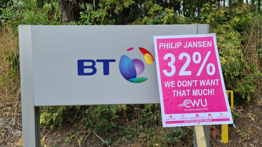 BT recorded £2 billion in profits before tax last year. Its CEO, Philip Jansen, enjoyed a salary of £3.5 million. Yet it’s now offering engineers & call centre workers a real terms pay CUT.
